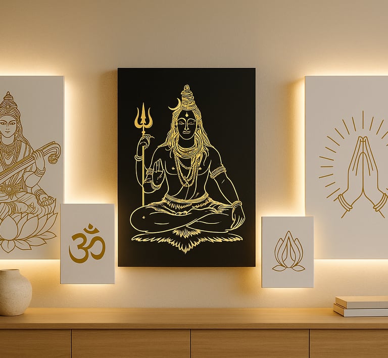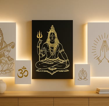 Explore our handcrafted wooden frames inspired by Indian spirituality.